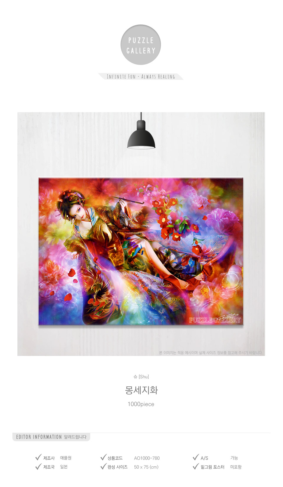 - 퍼즐의 경우 조각이 없으실 경우 영업중인 국내제조사 상품은 조각 A/S가 가능함으로 교환 및 환불이 불가합니다.