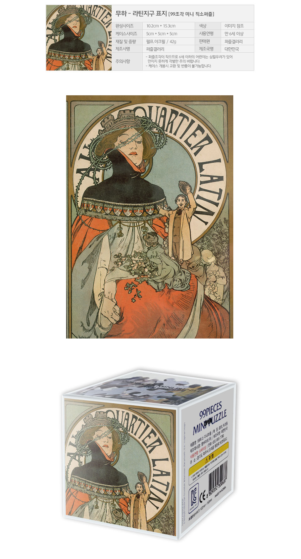 이미지 확대보기99피스 직소퍼즐 알퐁스 무하 라틴지구 표지 미니조각 챔버아트