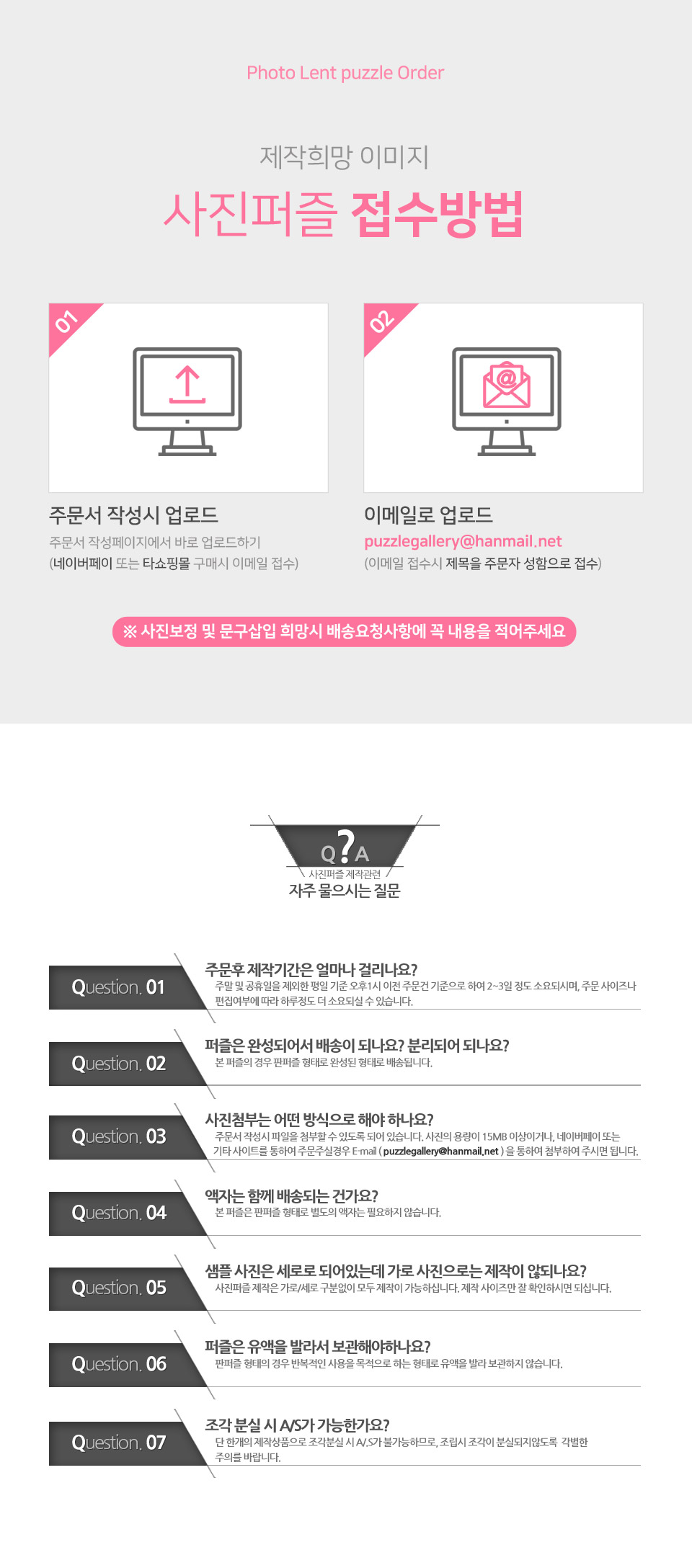 이메일을 통하여 사진을 첨부하여 주실때는 꼭 메일 제목을 주문자 성함으로 작성하여 주시기 바랍니다.