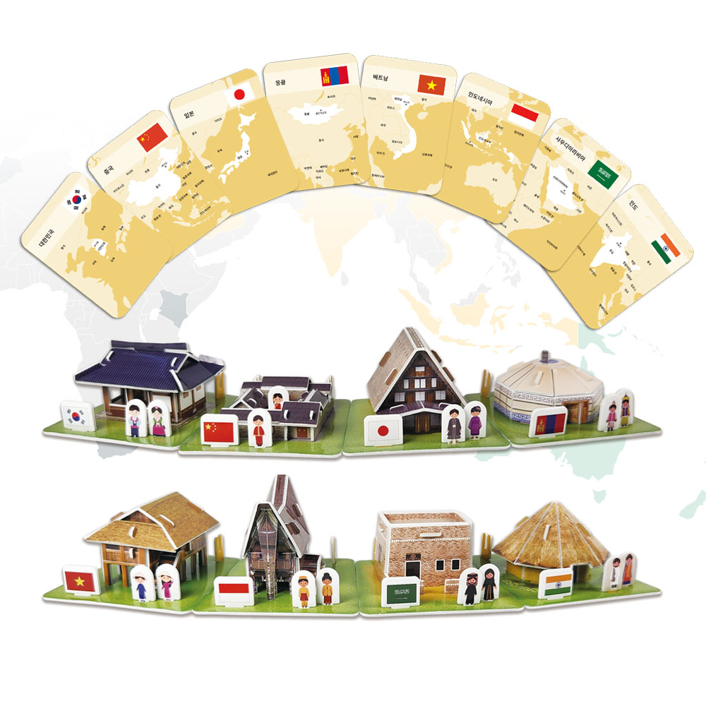 3D입체퍼즐 다문화가정 세계전통가옥 시리즈1 아시아 우드락모형 크래커플러스