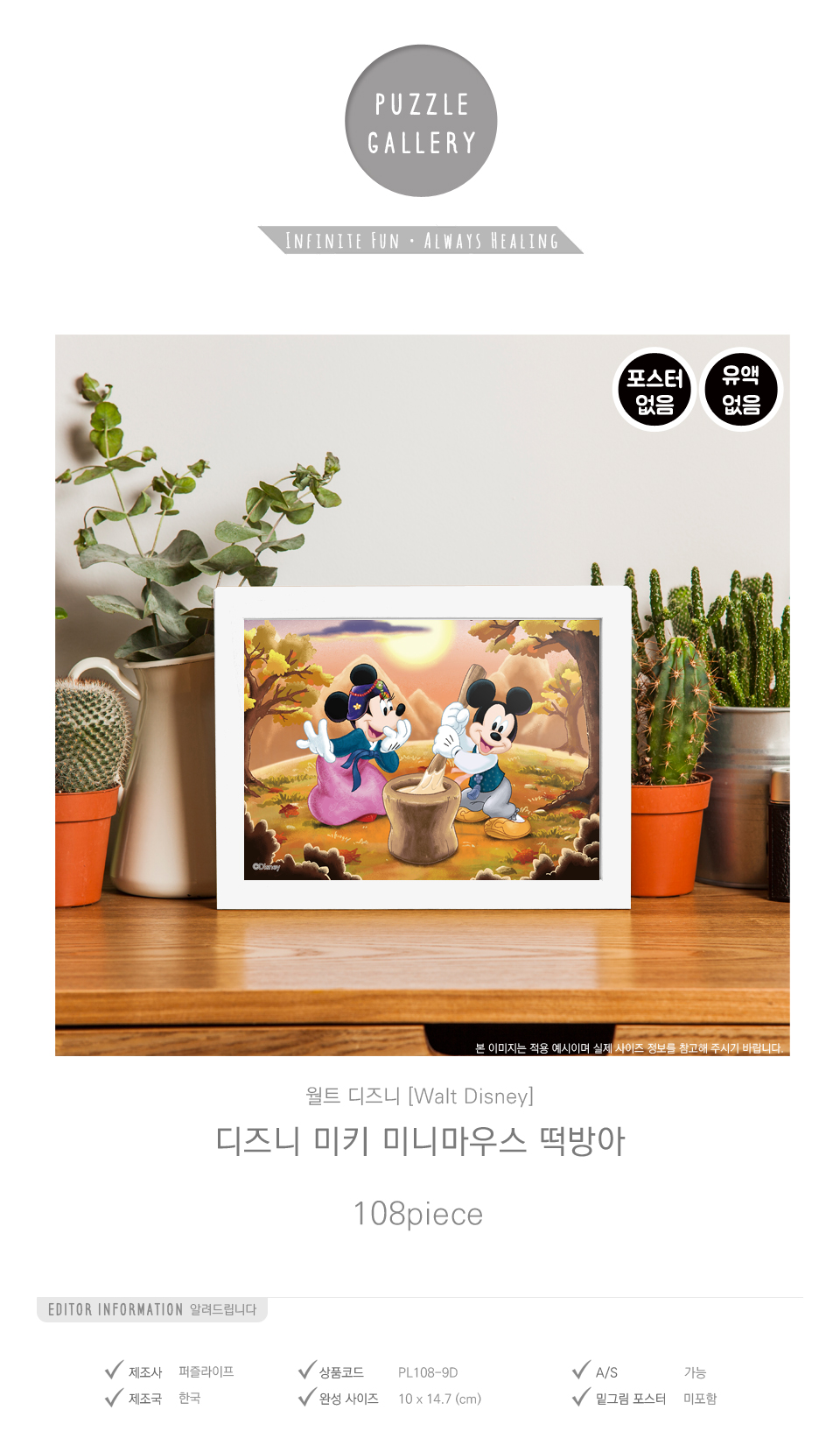 108피스 직소퍼즐 디즈니 미키 미니마우스 떡방아 퍼즐라이프 PL108-9D