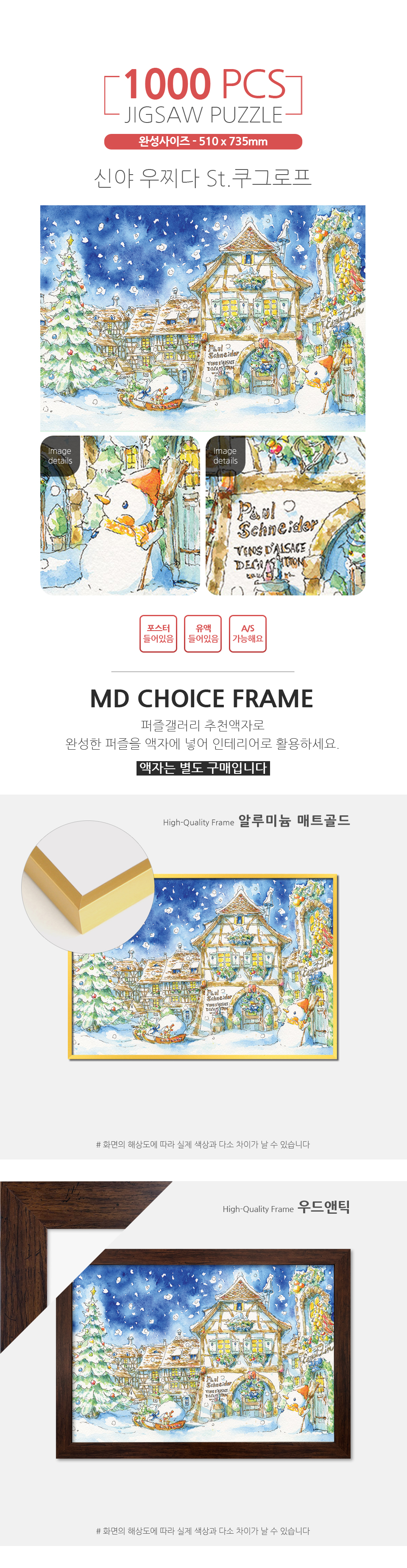 - 퍼즐의 경우 조각이 없으실 경우 영업중인 국내제조사 상품은 조각 A/S가 가능함으로 교환 및 환불이 불가합니다.